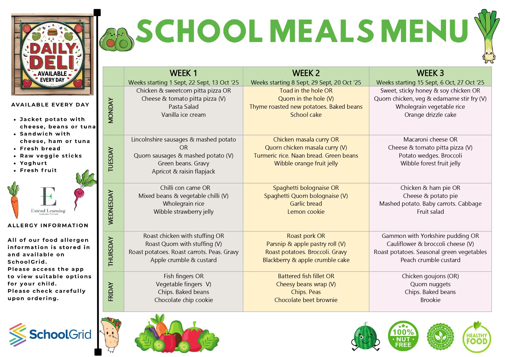 Please note ALL children’s meals will need to be pre-ordered, regardless of whether your child is in Foundation, Year 1 & 2 (Universal Free School Meals) or is in receipt of Free School Meals.